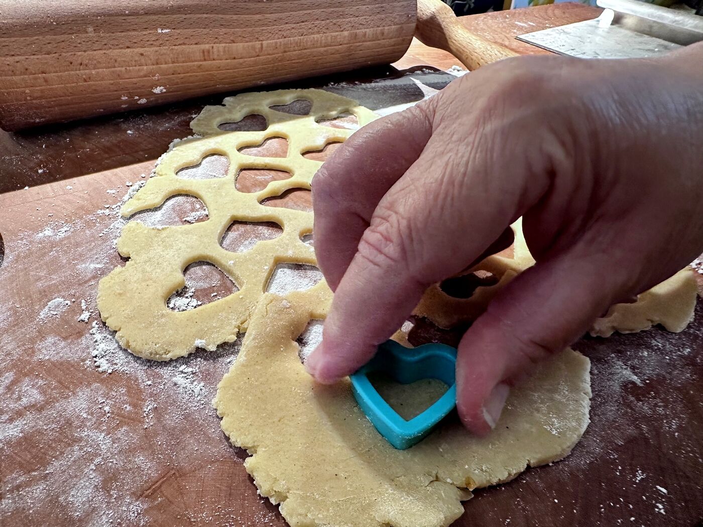 Für den Kirchentag bäckt Petra Utermöller aus Bad Sachsa 25 Bleche voller kleiner Herzchen, insgesamt 2.500 Stück, und serviert sie zusammen mit einem Espresso am landeskirchlichen Stand "Kreuz und Bohne" am Kröpcke.
