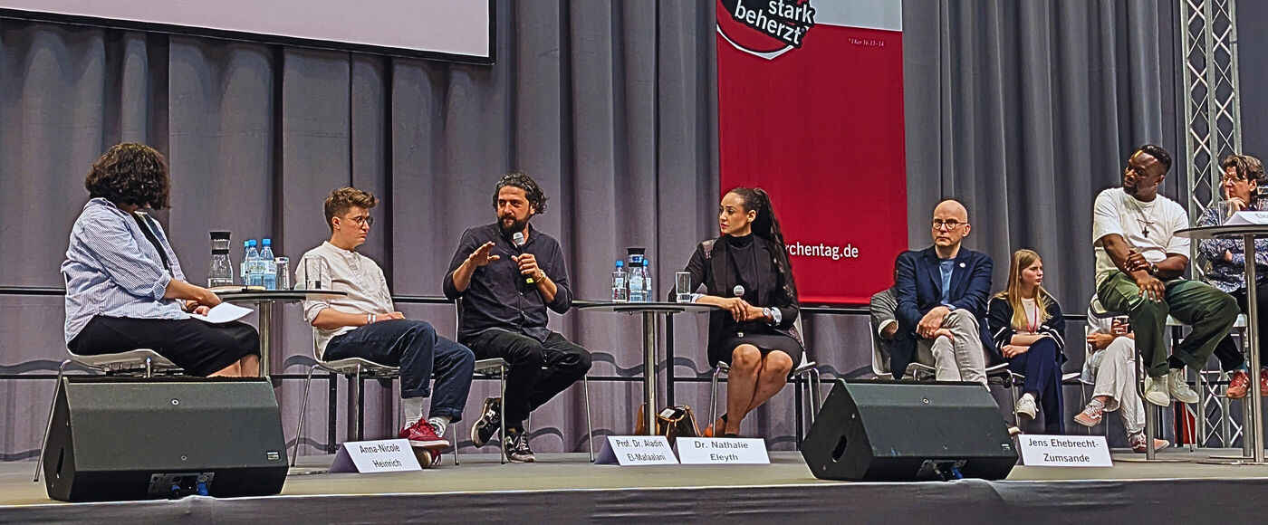 Krieger-Juhnke: An einer Stelle im Text habe ich ursprünglich gesagt: Alter, Ralf, hörst Du Dir überhaupt zu? Da haben Ralf und ich uns jedes Mal weggeschmissen, haben es dann aber doch abgeschwächt. So geht man nicht miteinander um und das ist nicht die Message, die wir von der Bühne senden wollten. Für mich war das Problem außerdem, dass man die Chance ja nutzen und möglichst viele Themen unterbringen will. Der Umgang mit Rechtsaußen war schon ein großes Ding beim Landesjugendcamp, aber ich hätte auch gern noch viel intensiver das Thema Klimaschutz beleuchtet. Der Kirchentag muss für mich politisch sein und es gibt so viele Themen, die gerade brennen. Aber irgendwann verzettelt man sich und denkt sich: So viel wäre zu sagen, aber der Raum ist gar nicht da für alles.